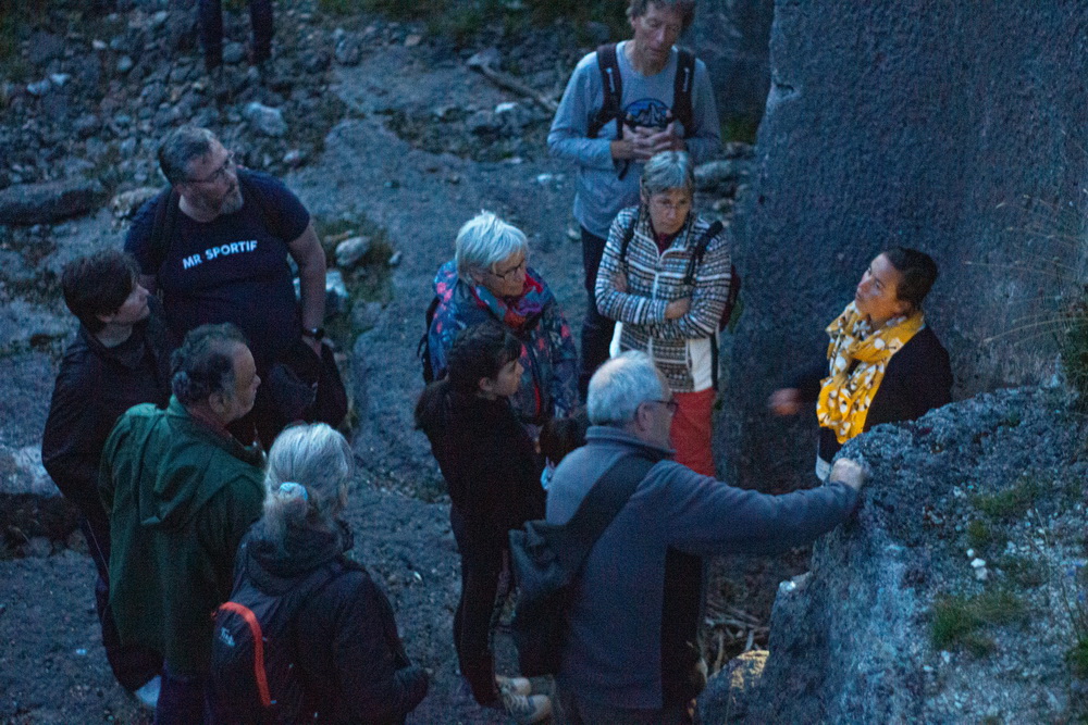 Chaque pause était l’occasion d’ouvrir ses sens, de regarder le sol, le ciel, d’écouter l’engoulevent, le rossignol, les histoires, de se faire embarquer dans la passion de chaque intervenant.