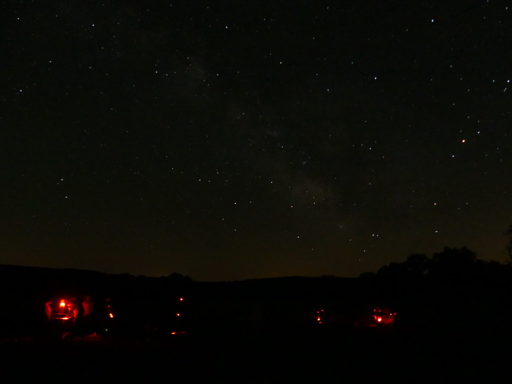 Quant à la troisième nuit, elle était parfaite. Pas de voile d’altitude comme la nuit précédente permettant de voir le réel potentiel du C11 en observant des faibles galaxies et nébuleuses sans difficulté. Le ciel était bien noir, sans aucun halo lumineux à l’horizon. La Voie Lactée illuminait tels des nuages éclairés par-dessous s’étendant du nord-est au sud jusqu’à l’horizon quand le Scorpion et le Sagittaire étaient bien levés.